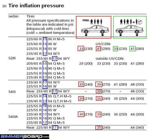 Confusion Over 540i Tire Pressures Bimmerfest Bmw Forums