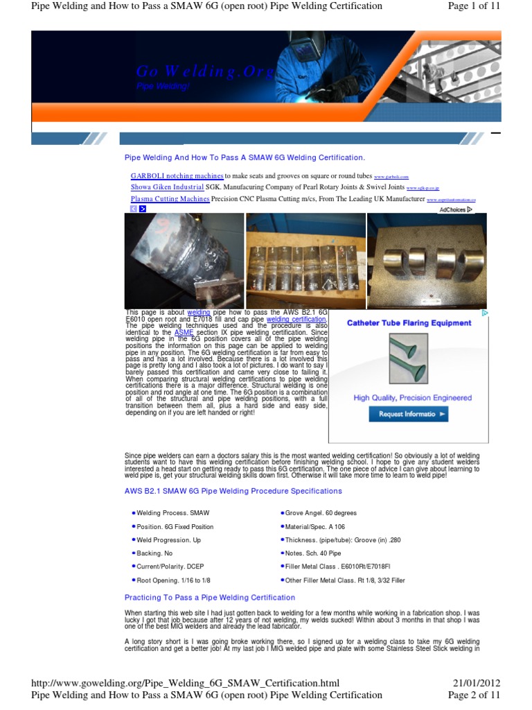 6g welding certification is technically a welder qualification test which is more often than not arranged in pre employment screening to make sure that the welder can perform up to the standards of the employing company. Capital region boces welding program to many locations to list accredited with pipe welding blueprint reading and welder certifications. Delhi state university of new york welding program 2 main st. The 6g position is a combination of all of the structural and pipe welding positions with a full transition between them all plus a hard side and easy side depending on if you are left handed or right.