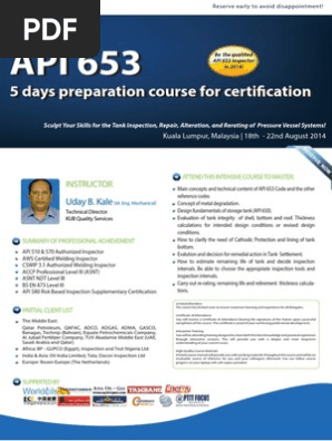 Api 653 certification preparation course length. The api 653 aboveground storage tank inspector must have a broad knowledge base relating to tank inspection and repair of aboveground storage tanks and will satisfy the minimum qualifications specified in api standard 653 tank inspection repair alteration and reconstruction. Api 653 certification is valid for a three year term. Learn more about the web quiz for your particular certification.