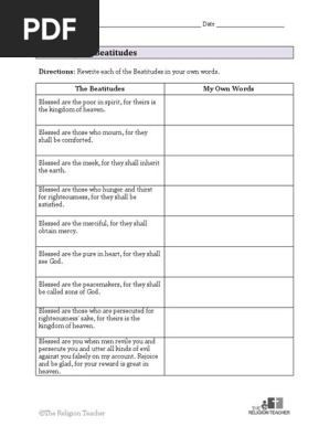 Beatitudes Worksheet Pdf Free Download Printable