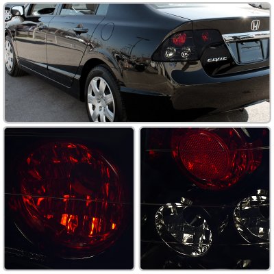 Honda Civic Sedan 2006 2010 Black Smoked Euro Tail Lights