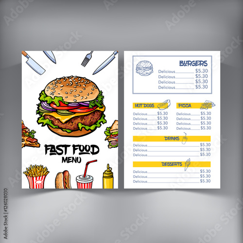 Sketch Style Hand Drawn Fast Food Cafe Or Restaurant Menu