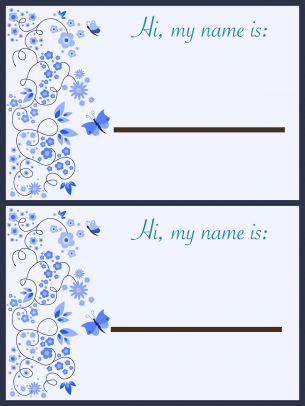 You can print out different butterfly name tags on one sheet and then cut into individual label. The first page has six butterfly name tags with a blue polka dot butterfly. The free name tag is available in your choice of doc or pdf formats. See 9 best images of free printable name tags.