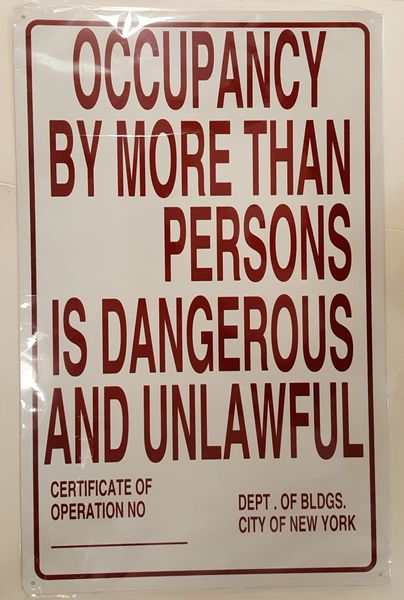 Nyc Maximum Occupancy Sign Aluminum Signs 22x14