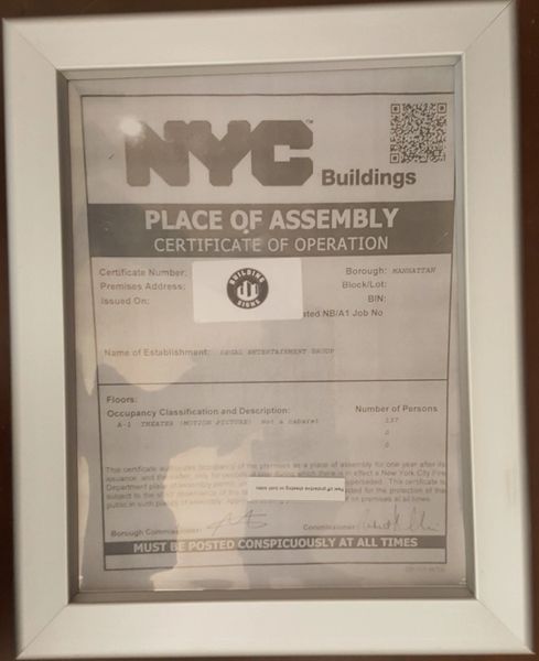 Nyc Place Of Assembly Certificate Of Operation Frame 8 5 X