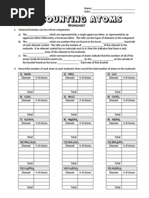 13 Counting Atoms Worksheet Chemical Compounds Molecules