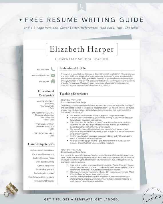 Teacher Resume Template For Word Pages Teacher Cv Template Elementary Resume Teaching Resume Administration Resume Instant Download