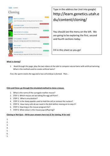 Biotechnology Webquest Cloning Name Site Genetics Science