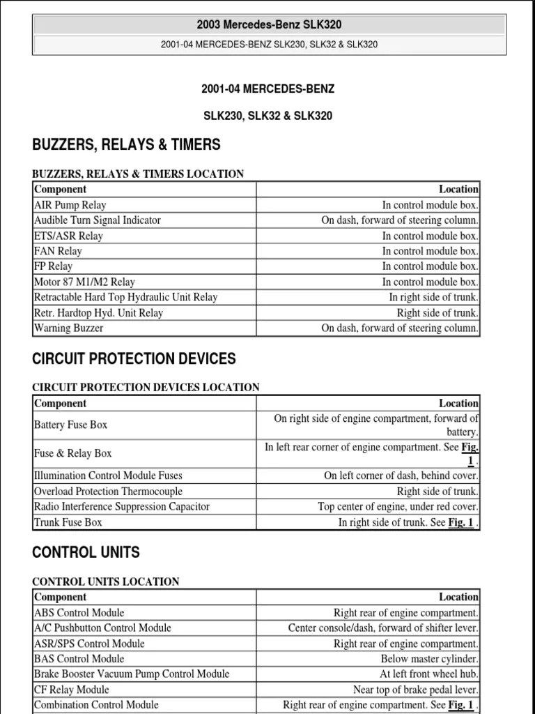 Fuse Box Location And Diagrams Mercedes Benz Slk Class