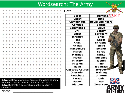 The Army Wordsearch Puzzle Sheet Keywords Settler Starter Cover Lesson Careers Jobs Military
