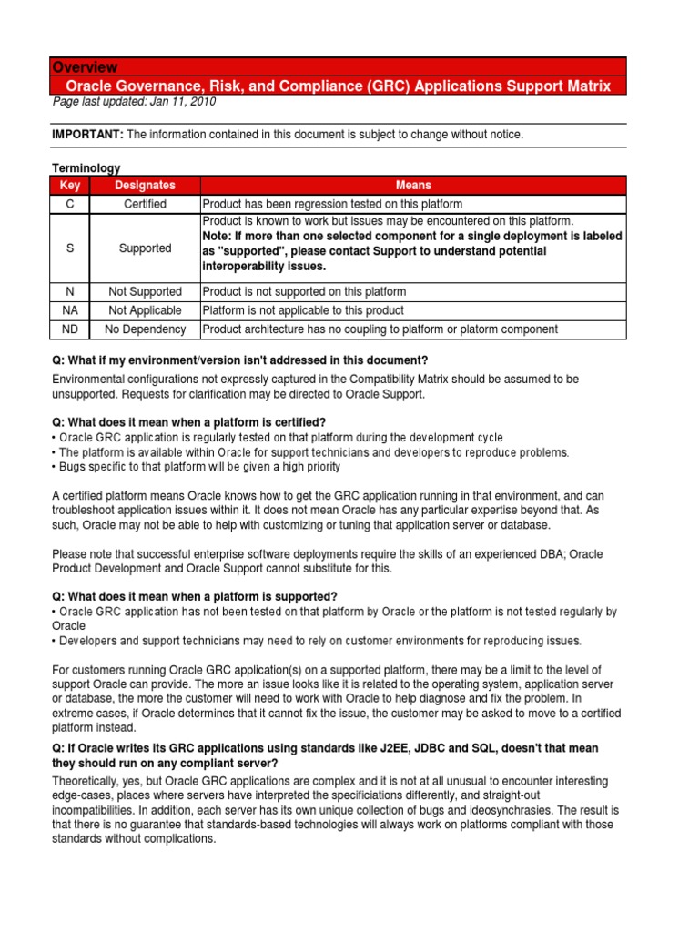Grc Certification Matrix Oracle Database 64 Bit Computing