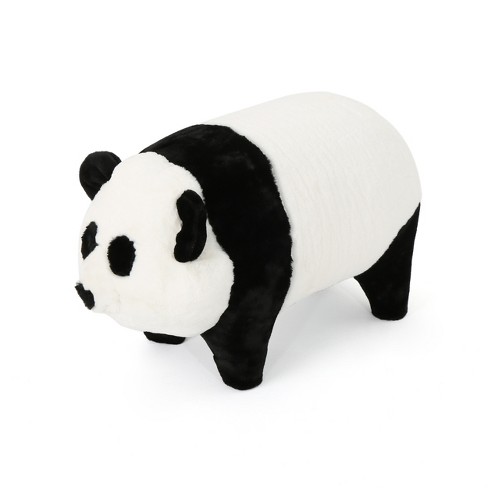 Jotham Kid S Faux Fur Panda Ottoman White And Black Christopher Knight Home