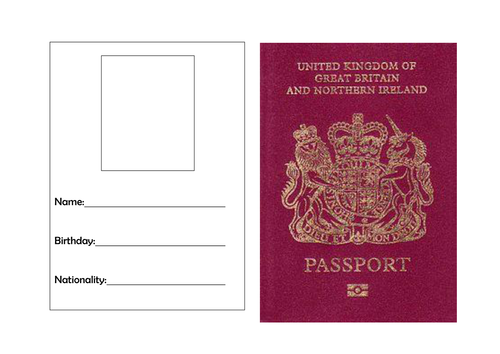 Passport front cover template. The other two pages can be used to record information about the country studied eg. Print cover on heavier paper or card. Cut the blue card stock 6 x 7 so that when folded it becomes a 6 x 3 12 book. First page has space for children to fill in personal details.