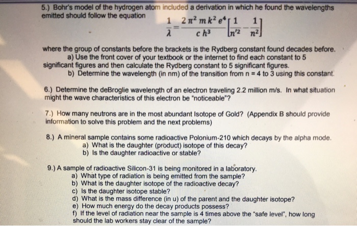 Solved 5 Bohr S Model Of The Hydrogen Atom Included A D