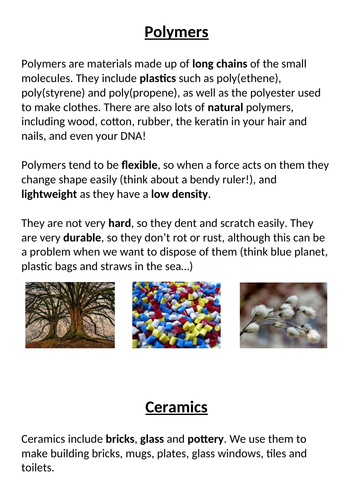 Year 9 Chemistry Making Materialsceramics Polymers Composites