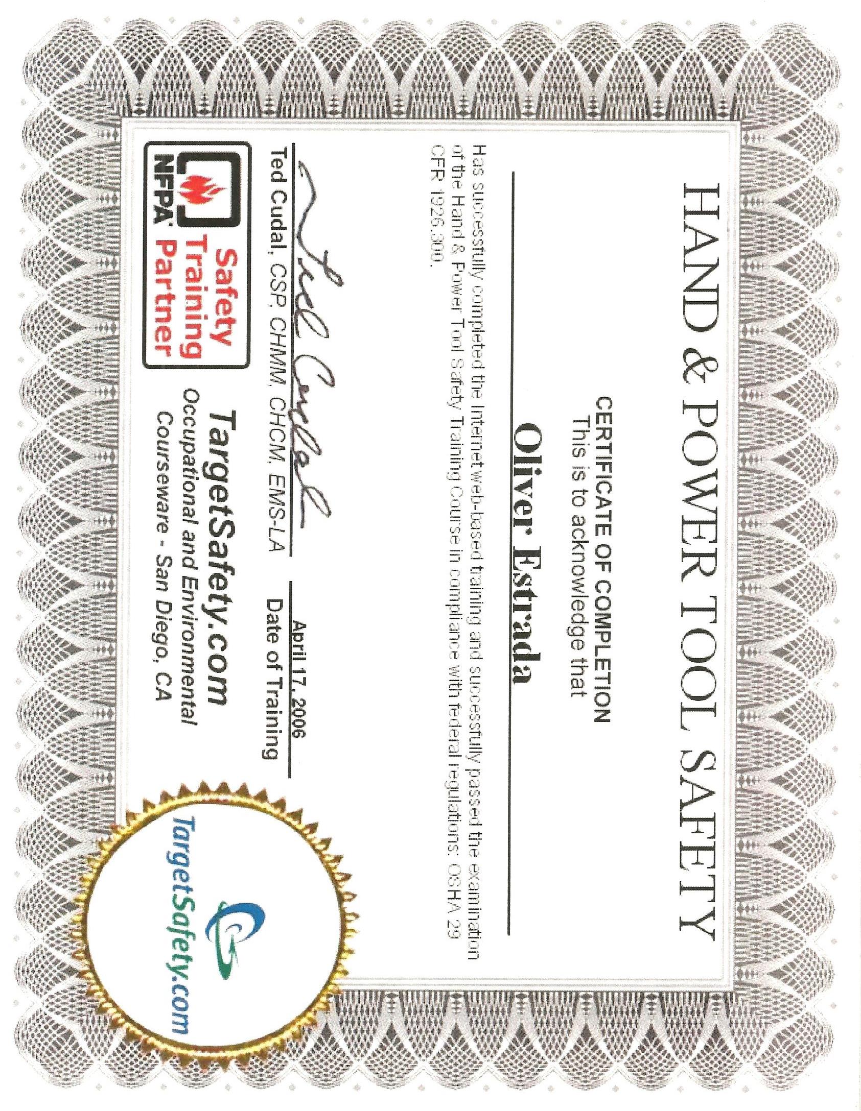 Power tool certification. Hand power tool training solutions. Employees who use hand and power tools are exposed to the hazards of falling flying abrasive and splashing objects or to harmful dusts fumes mists vapors or gases. Csa group holds accreditations from organizations such as scc and osha. Use of powder actuated tools requires training and certification.