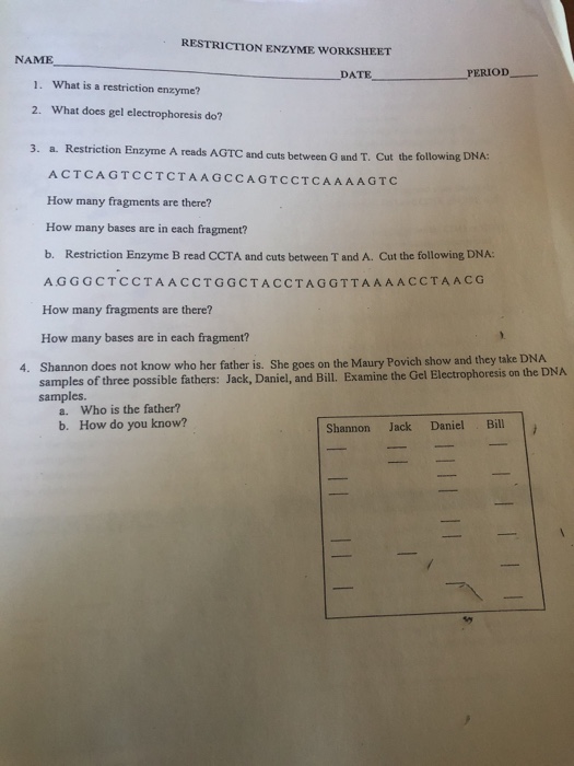 Solved Restriction Enzyme Worksheet Name Date Period 1 W