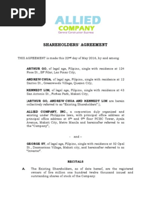 A copy of the full shareholder agreement may be requested from the board of directors at any time. A shareholder agreement describes the rights and obligations of the company its existing shareholders and new investors. Article 12 termination. Make your shareholders agreement online today with our free shareholders agreement template.
