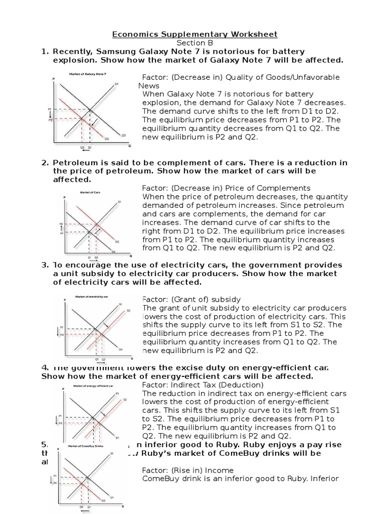 Market Supply And Demand And Equilibrium Prices Worksheet