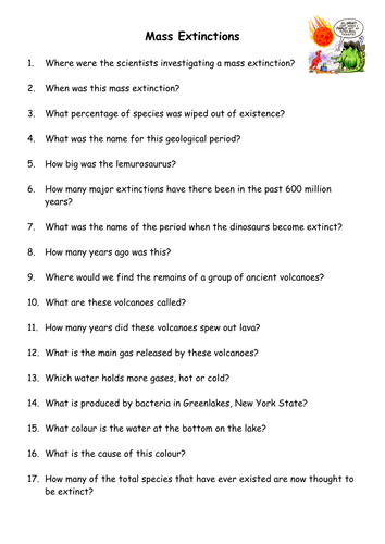 Mass Extinctions Worksheets Teaching Resources Tpt
