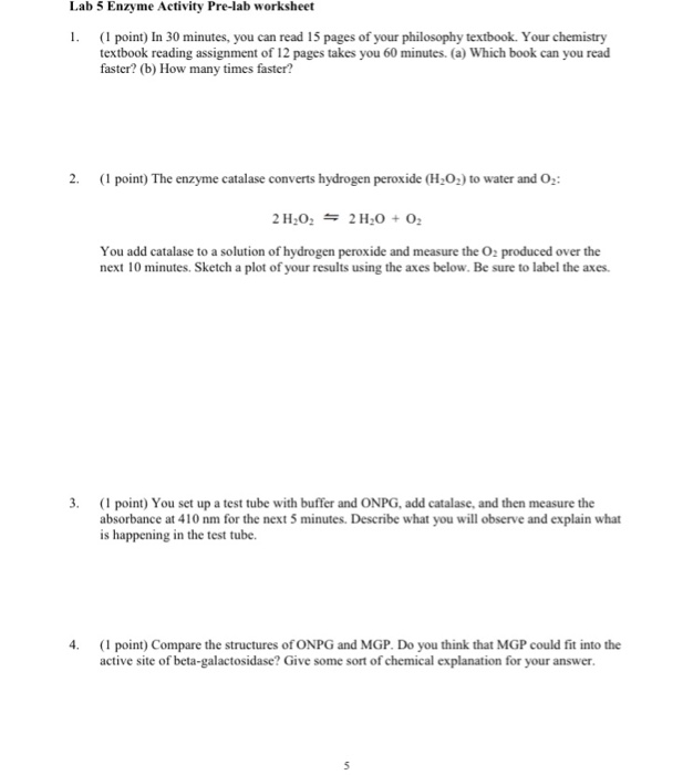 Solved Lab 5 Enzyme Activity Pre Lab Worksheet I Point