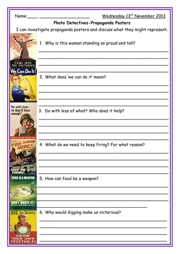 World War 1 Propaganda Worksheet Answer Key